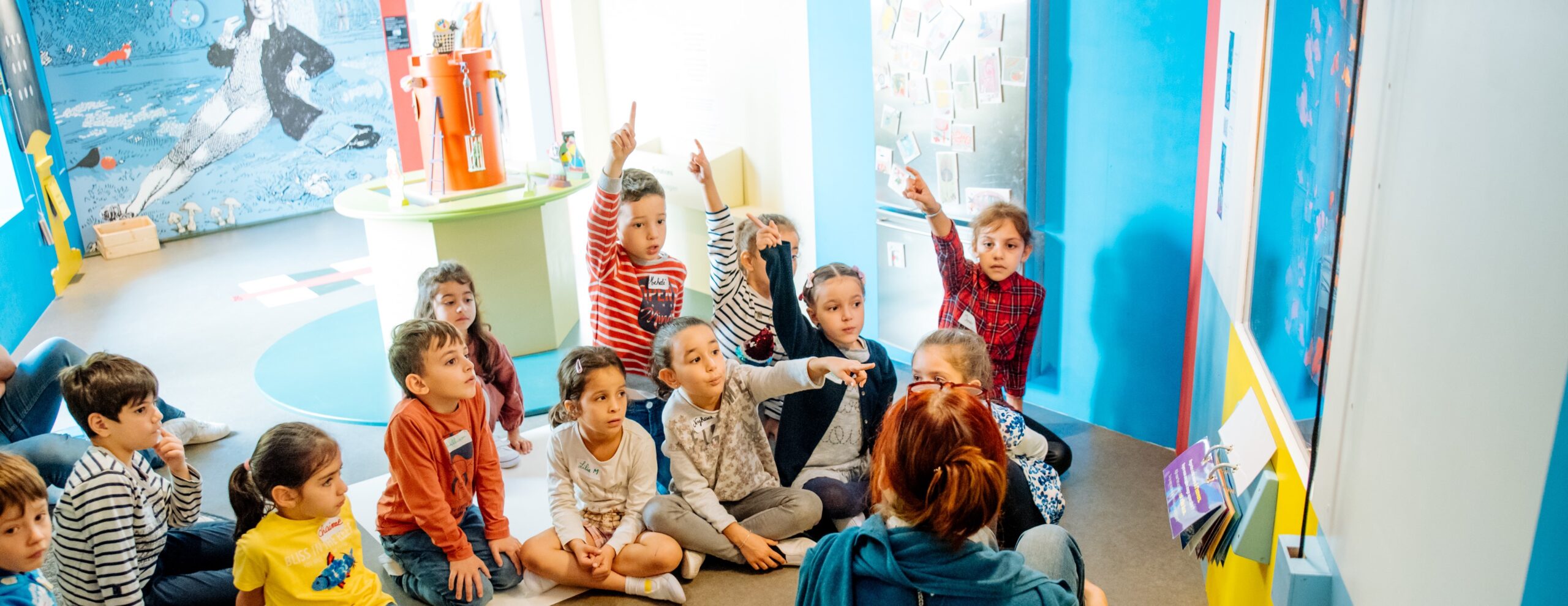 Le matin, le Musée est fermé au public et est réservé à l’accueil des groupes extrascolaires et associatifs. Les enfants sont repartis en petits groupes de 15 et sont pris en charge par un animateur du Musée des Enfants. Il leur fait découvrir l’exposition actuelle « Des ailes pour grandir » de manière ludique et didactique. Les enfants ont la possibilité de participer aux ateliers théâtre et conte.